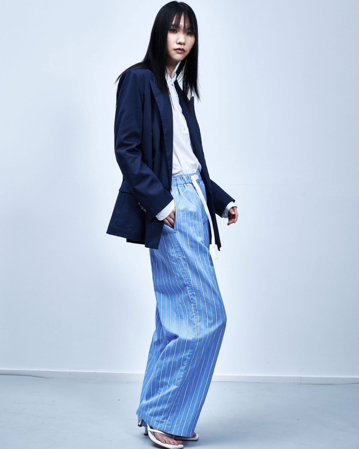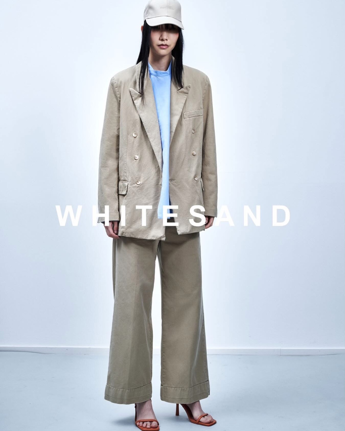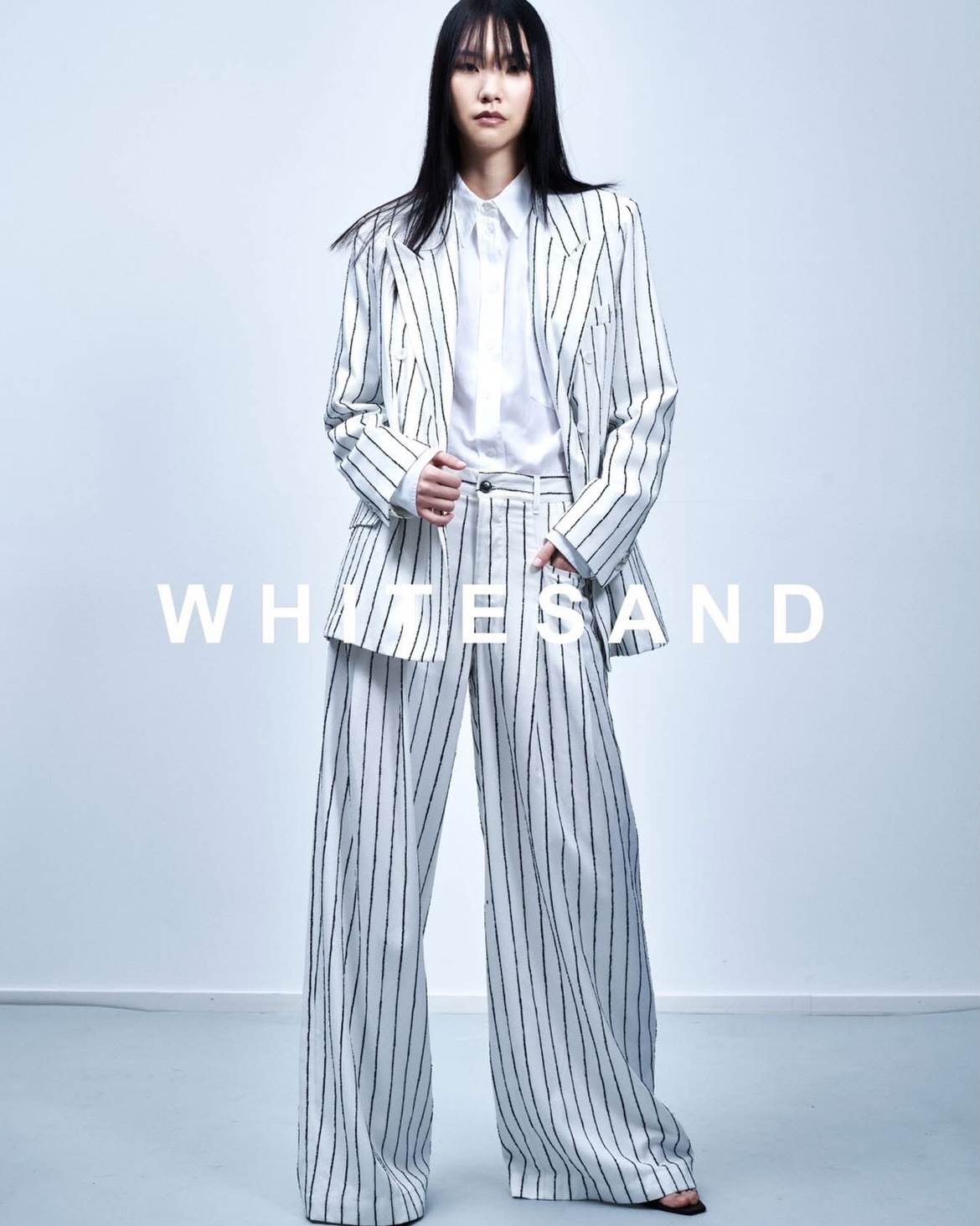 ブランドのシグネチャーとして、ポケットにあしらわれた小石が一着ごとに存在感を添え、WHITESAND のプロダクトであることを直感的に認識させる。実用と洗練を横断するデザインは、日常を軽やかに、そしてモードへと引き上げる。