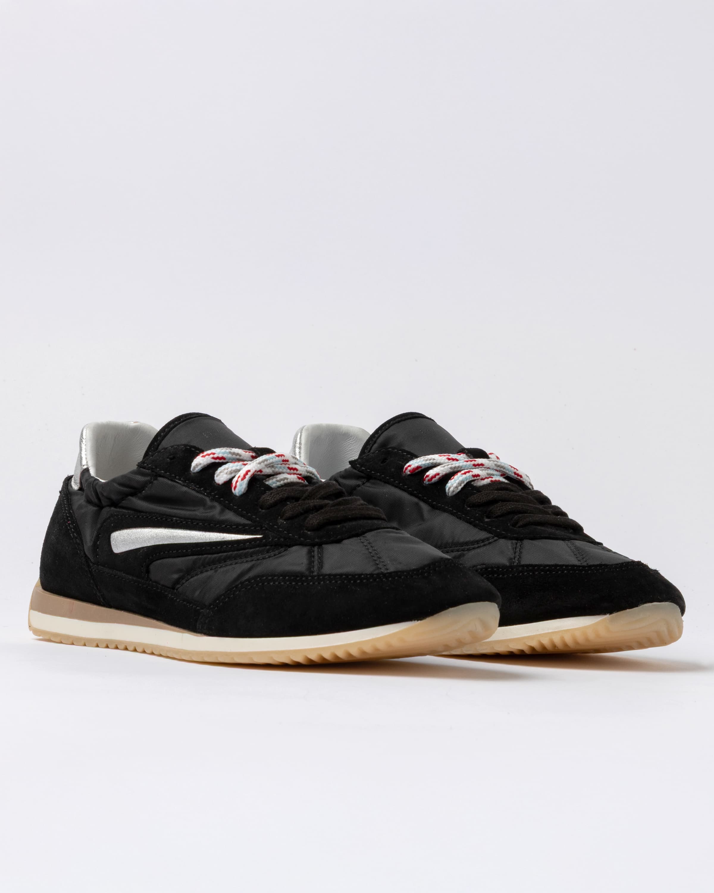 異素材ミックスが生む奥行きと軽やかな履き心地で、