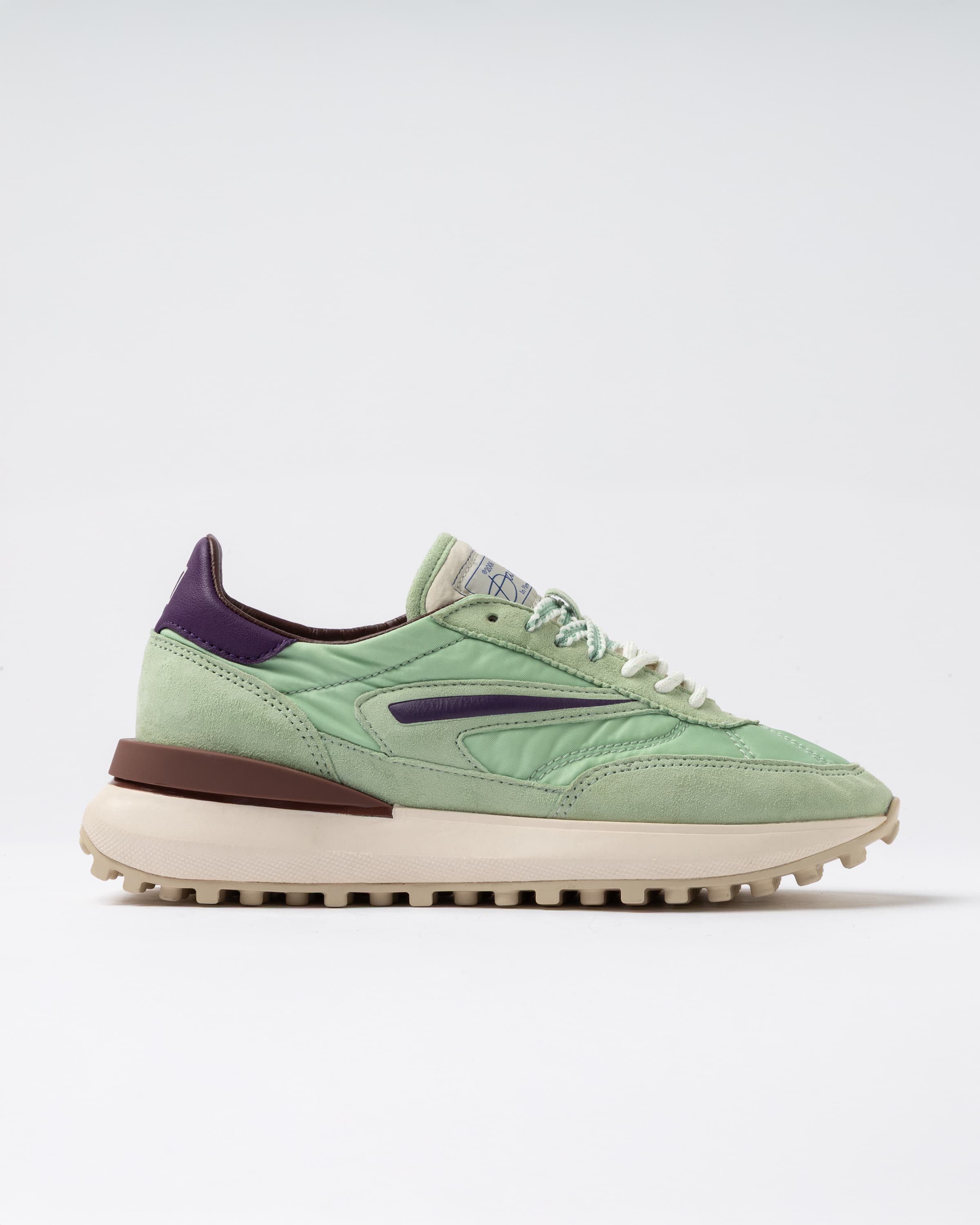 異素材ミックスのアッパーとボリュームソールを組み合わせたプラットフォームモデル。